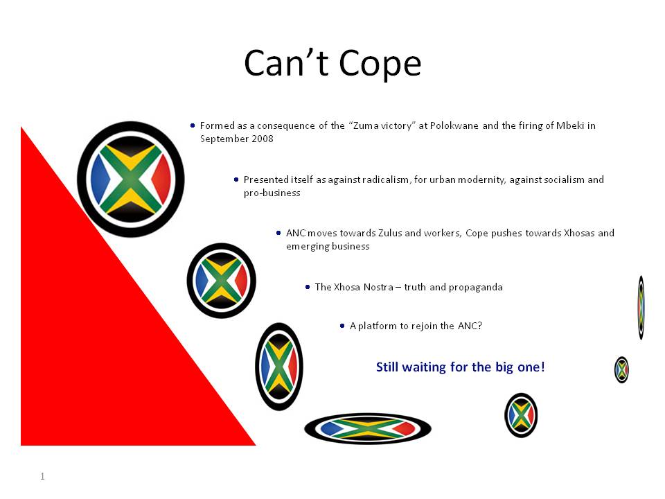 Alan Boesak , the cleric and pardoned fraudster, resigned from Cope and the Western Cape provincial legislature today. The once hopeful potential opposition to the ANC seems to be in a terminal state of decline, with several key leadership figures having resigned over the last few months. Boesak was always going to be a problemContinue reading “Cope – going, going …..”