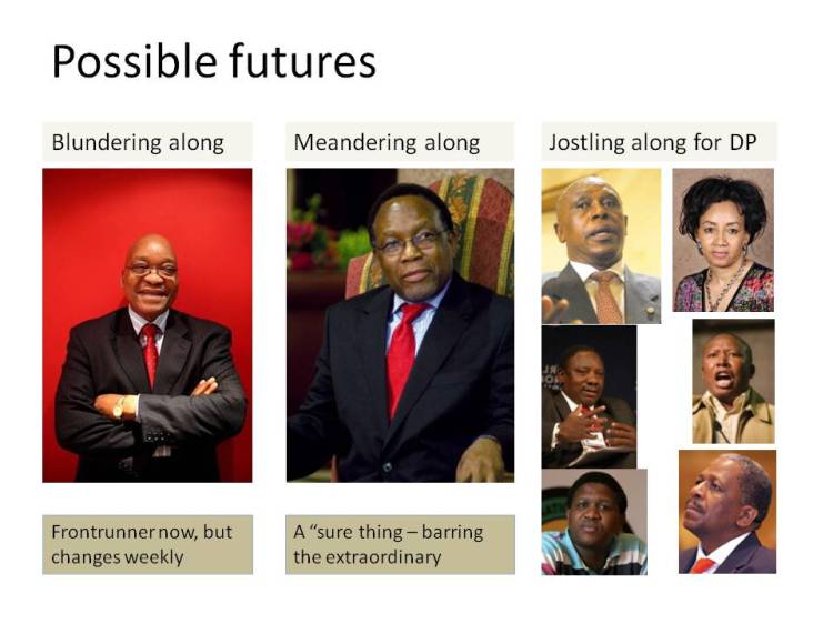 What the slide doesn’t take account of is a push to remove Zuma entirely giving Tokyo a shot at the deputy presidency at Mangaung and therefore the possibility of him becoming president of the country by 2019. That strategy is up against it, but the rewards of success will probably cause his backers to give it a full go.