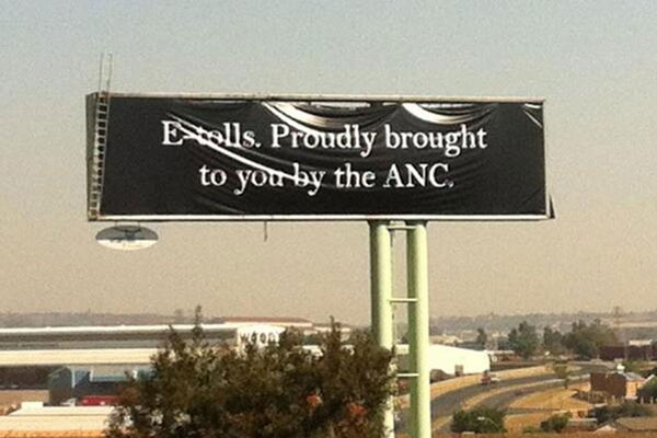 The interesting aside is that last week huge billboards sprung up along those highways saying things like: “E-tolling – Proudly brought to you by the ANC”.