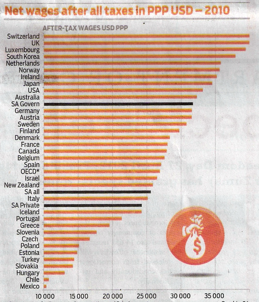 Adjusted for inflation those figures in bold are heading towards zero – and remember we are talking about over 30% of the total. The public sector wage bill was R8,1bn more than budgeted for in 2011/12 and it is not an exaggeration to suggest that the whole edifice of the budget could crumble on this point.
